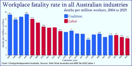 The bad old days of Australia accepting as normal that 25 workers in every million across the nation are killed each year are gone. That was the regime through the Howard era — at the end of which, in 2007, 310 employees lost their lives. That’s according to comprehensive data provided by Safe Work Australia.