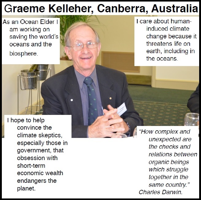 The only Australian Ocean Elder is Graeme Kelleher, the first Chairman and CEO of the Great Barrier Reef Marine Park Authority, serving in this capacity from 1979 to 1994.