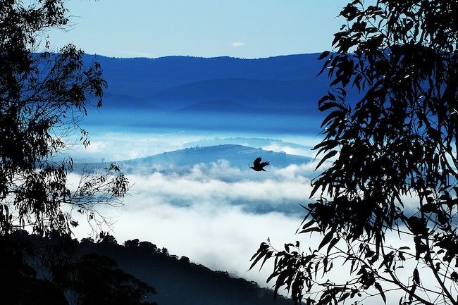 This picture of a bird flying high above recent fog over Melbourne's Yarra Glen was shot from Skyline Road, Christmas Hills.