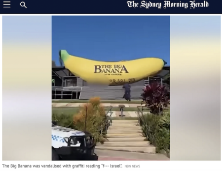 To meet the NSW Police Minister’s definition of "antisemitic", the graffiti on the Big Banana surely far exceeded in gravity the stunt by defunct neo-Nazi group the National Socialist Network, who lined up with a banner saying, ‘Abolish the Jewish lobby’ outside the NSW Parliament in November of last year.