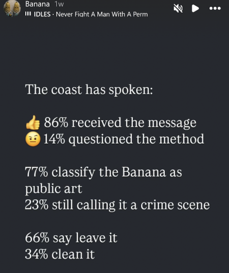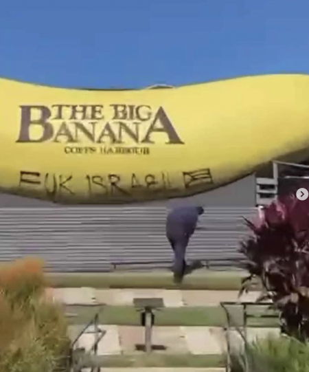 I think "Fuk Israel" should be an ongoing feature on the Big Banana. Either by being subjected to routine defacement or, ideally, by permanently approving it as part of the design. It’s the most thrilling thing that’s ever happened to the Banana. The Coffs Coast ought to embrace it.