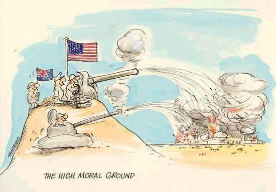 And when the events were parlous, with no room for humour, there was the responsibility to confront basic principles of morality with their their endless hypocritical flouting by the self-righteous on "our" side of the global power battle fence.