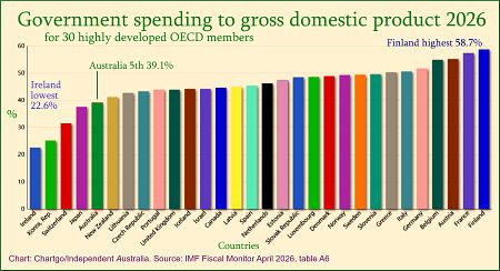 This has been achieved by stronger government revenue and controlled spending. Australia’s spending is 39.1% of GDP, well below the OECD average of 45.4%, thus undercutting mendacious newsroom claims that Labor is a spendthrift administration.