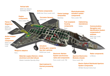 Components are then shipped from Australian manufacturers to regional warehouses across the globe (including one located at Williamtown, New South Wales).