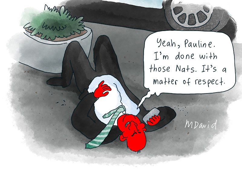 These “knockabout larrikin” ways, which extend to disinformation and general idiocy on a wide variety of subjects, such as climate denial, support of Trump, a penchant for drilling and digging every natural resource, and are sprinkled with regular doses of bigotry, racism, misogyny and all the Far-Right hatred on which Pauline Hanson’s One Nation has staked its “reputation”.
