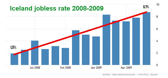 The impact on the Íslendingars was catastrophic. Unemployment shot up from below 2.0% to 8.7% in 13 months — the highest since records had been kept. The Icelandic króna plummeted against all major currencies. Inflation then devastated what was left of the króna, soaring above 17% for several months in 2008-09.