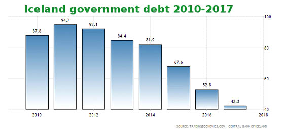Most impressively, Iceland has reduced its debt dramatically — from 94.7% of GDP in 2011 to 42.3% last year. This is on track to be below 24% by year-end.