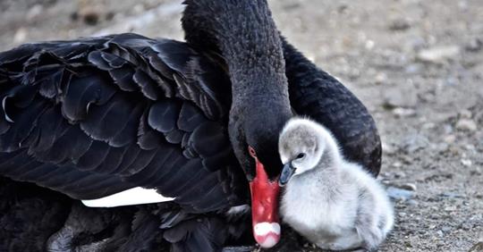 An adult black swan cares for her young, soon to be without a home (Image supplied)
