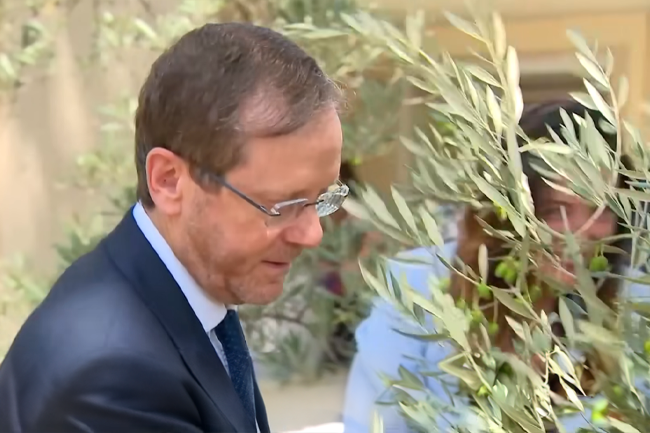 I wonder what might have been going through Herzog’s brain as he patted the soil at the foot of that tree. Was he claiming ownership of the decades-old olive trees that had been destroyed by settlers on the West Bank? Or symbolically asserting that European Jews have claimed a Middle Eastern identity and displaced the Indigenous people.